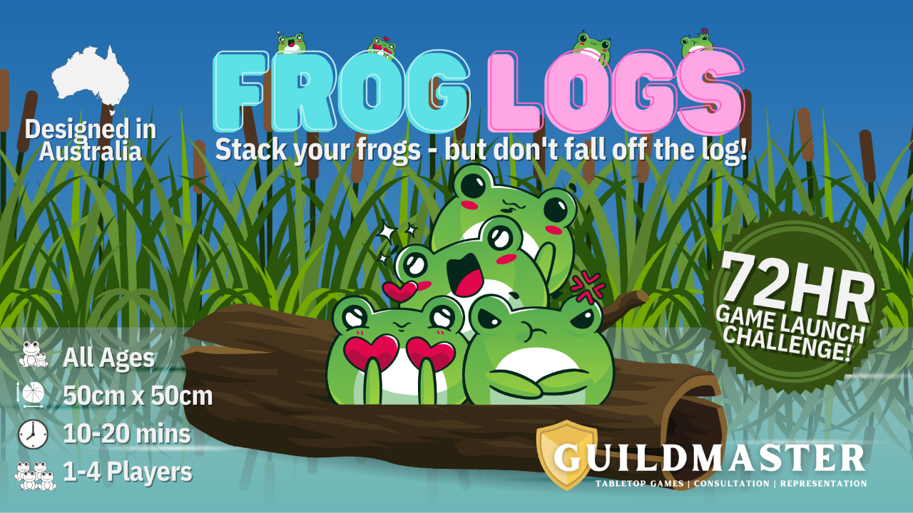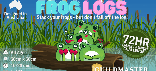 Basics- Let’s get stacking! In Frog Logs each player stacks a bent frog card on top of a log and another frog. If your frog stays upright, then you score! If it falls or knocks others off, then you don’t score that round. First to six points or be out of frogs wins!