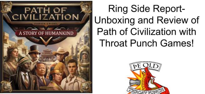 Ring Side Report-Board Unboxing and Game Review of Path of Civilization November 4, 2024 ~ fineyoungmisanthrope Share this: Click to share on X (Opens in new window) X Click to share on Facebook (Opens in new window) Facebook Like Loading... Related Published by fineyoungmisanthrope View all posts by fineyoungmisanthrope